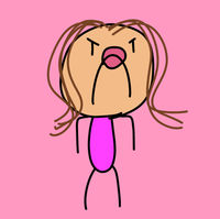 Add two long vertical tube shapes for the eyes, resembling an unbothered expression, two short lines for the eyebrows, and a wide curved frown across the lower face with a pink oval for the lipstick.